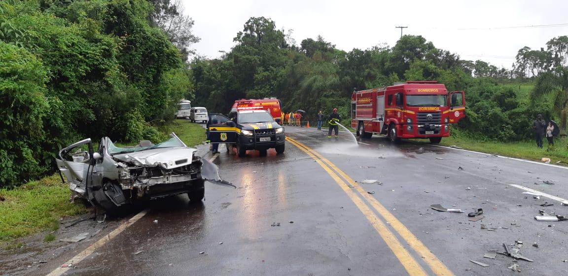 Conforme a Polícia Rodoviária Federal (PRF) o acidente envolveu um veículo Scenic, placas de Caxias do Sul, um caminhão, placas de Veranópolis e uma carreta tanque, de Carlos Barbosa. Duas pessoas que estavam no automóvel Scenic de 41 e 50 anos, ficaram presas nas ferragens e foram socorridas com ferimentos. O trânsito esteve em meia-pista no ponto até a retirada dos veículos envolvidos.