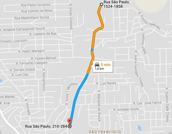 Nordeste (Buratti): Rua São Paulo até a concessionária de veículos subindo em direção a Rua Assis Brasil.