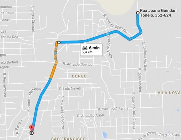 Nordeste (Linha Salgado): Rua Joana Guindani Tonello, Rua Mário Morassutti, Rua São Paulo até a vinícola.