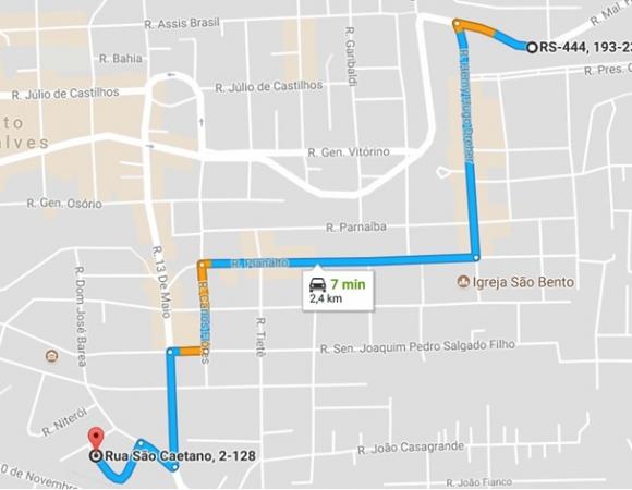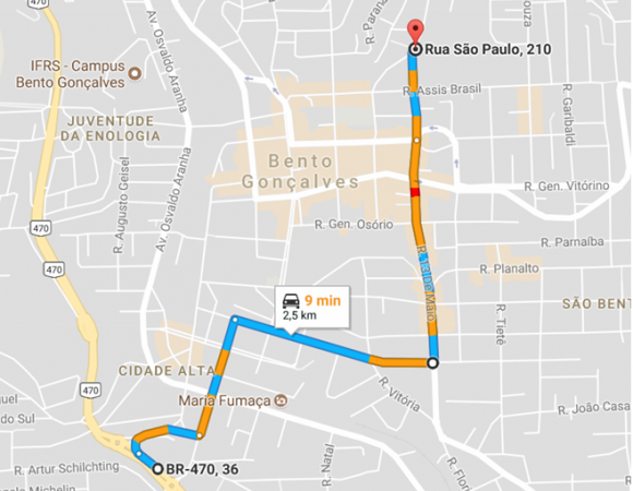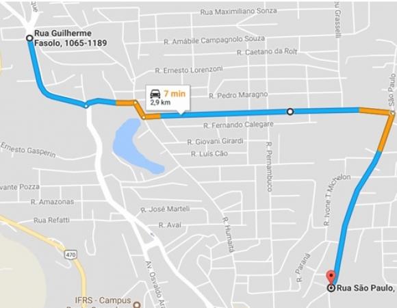 Norte (São Valentim, distritos de Tuiuty e Faria Lemos, Veranópolis, etc): RSC 470 até a Pipa Pórtico, Rua Silva Paes, Rua Olavo Bilac, Rua Belém, Travessa São Caetano.
